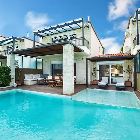 Förutom ett utrustat kök erbjuder villan också matplats och utomhusmatplats. Det finns ugn och diskmaskin. Det här boendet ligger mindre än 1 km från restaurangen Gourmeat, där gästerna kan njuta av olika måltider. Den närmaste flygplatsen är Thessaloniki, som ligger 95 km från boendet.